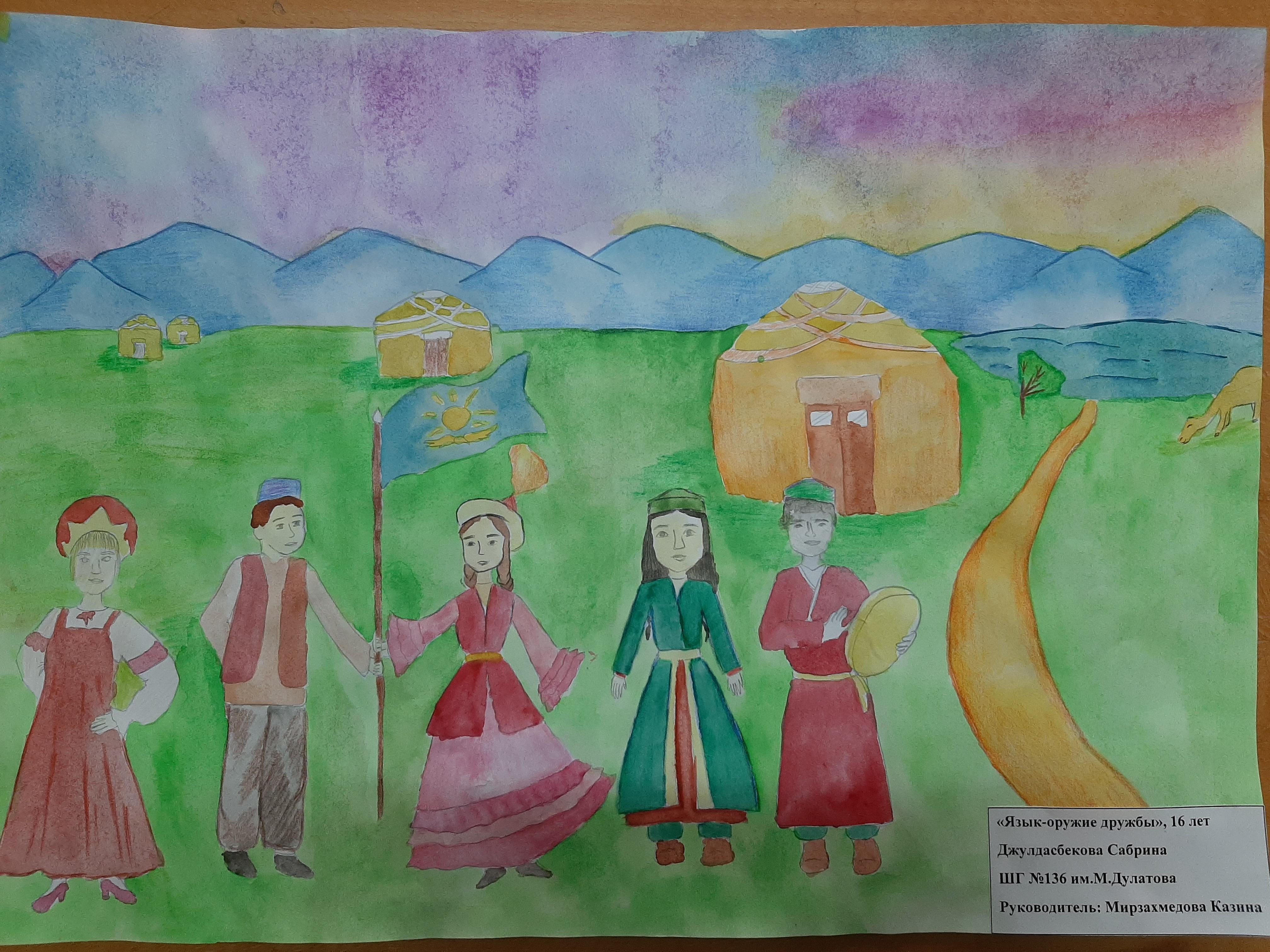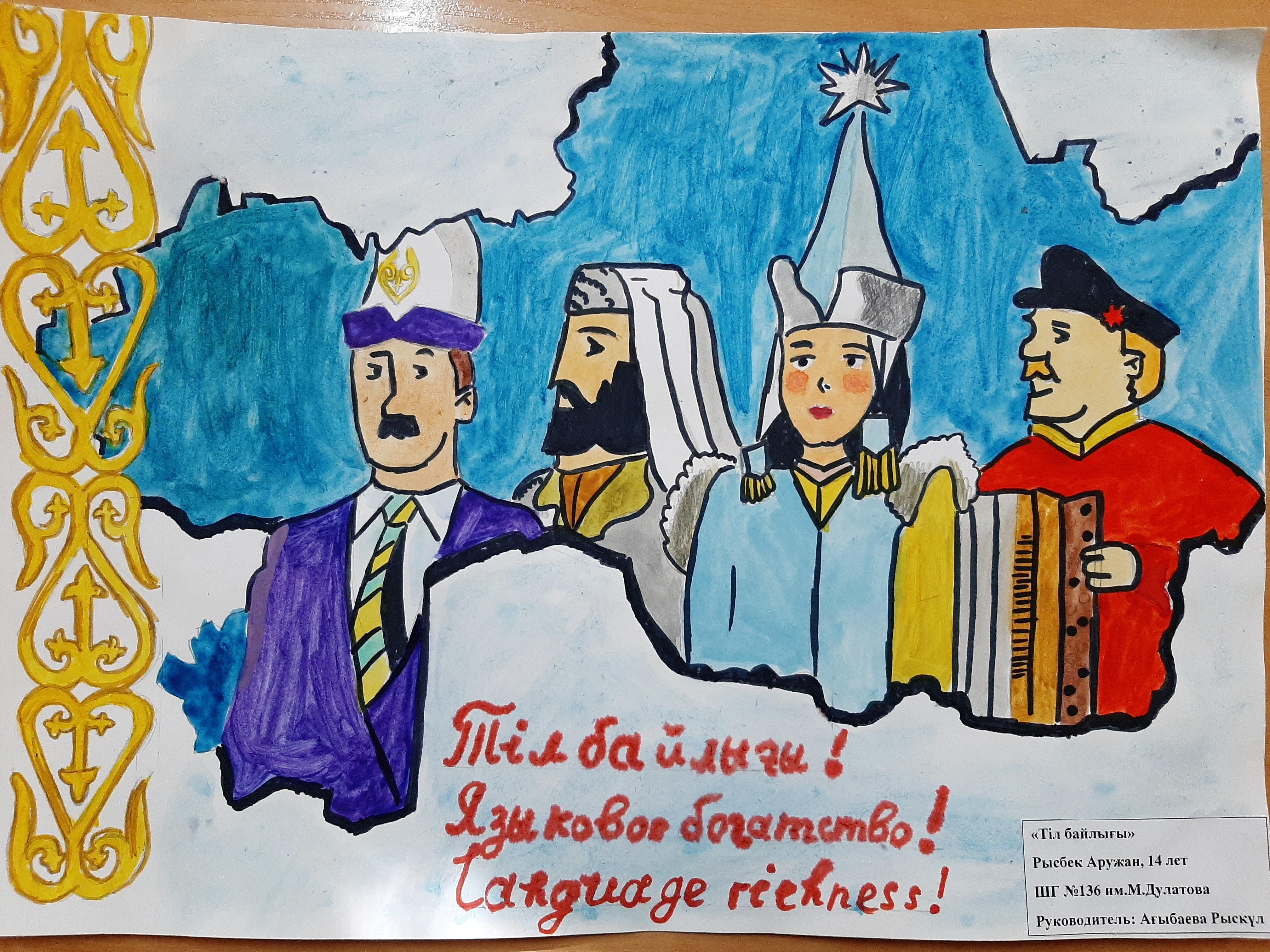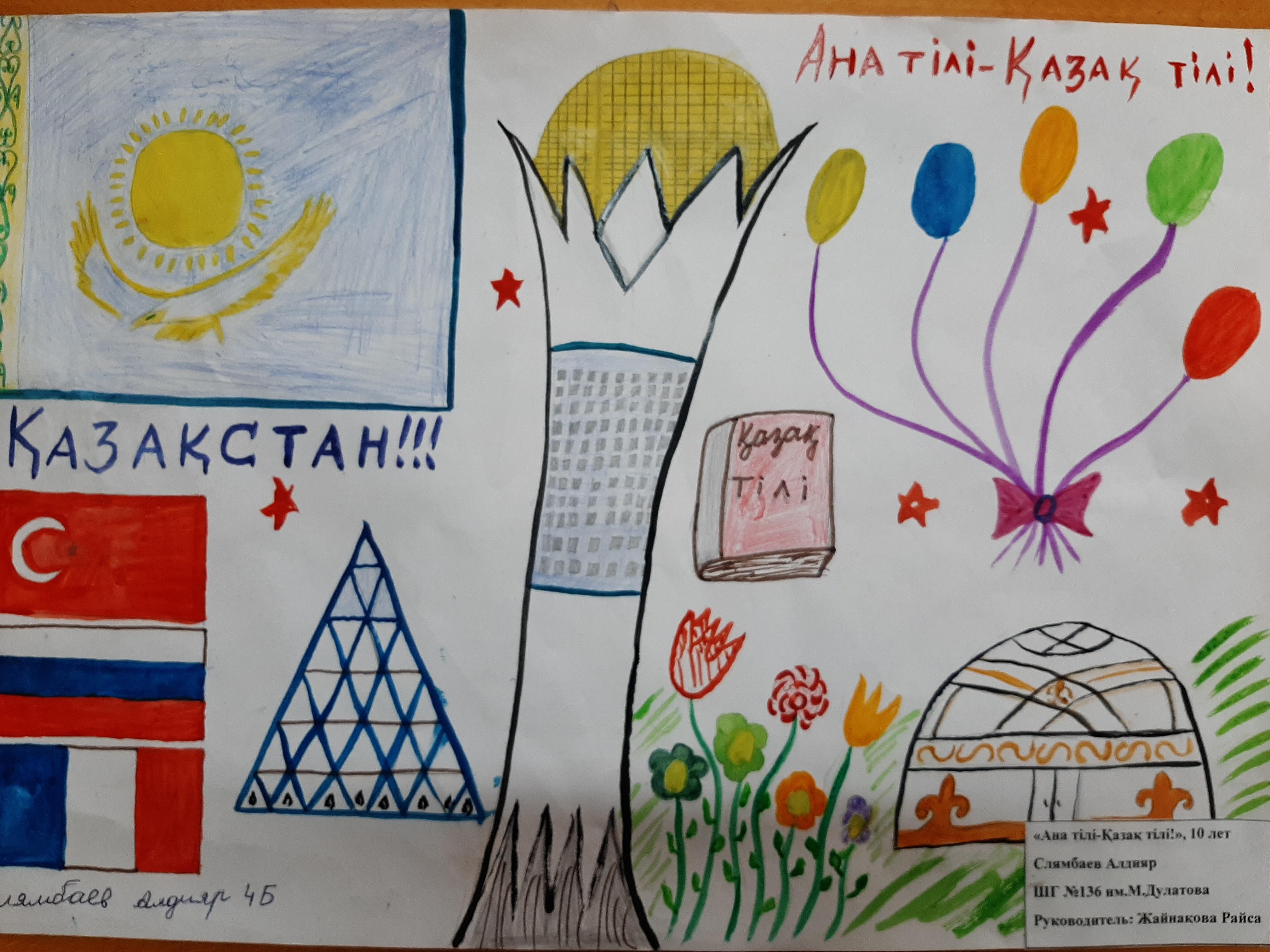 22 қыркүйек пен 2 қазан аралығында Тілдер мерекесіне орай "Өзге тілдің бәрін біл, өз тіліңді құрметте" атты мектепішілік онкүндік іс-шара жоспары негізінде "Тіл - ұлттың жаны" атты онлайн суреттер көрмесіне қатысушы оқушылардың жұмыстары