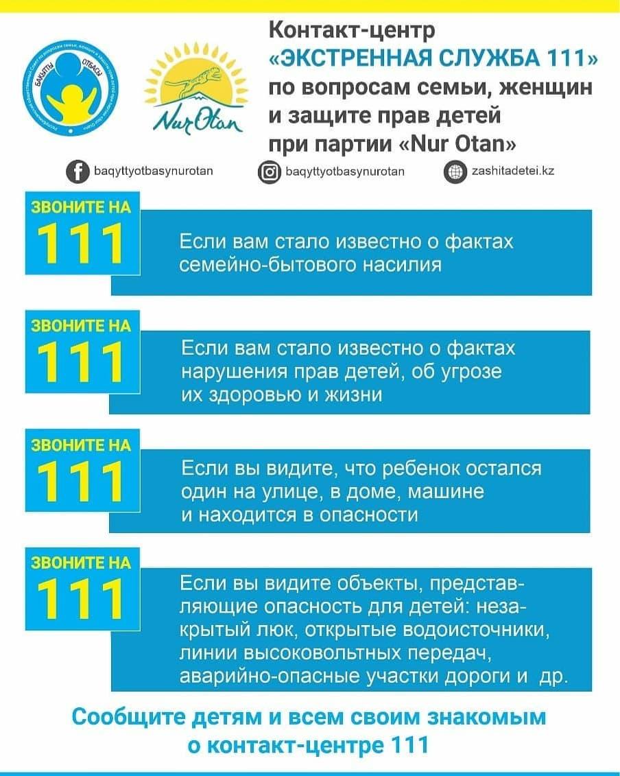 15 октябрь 2020 0 1 2 3 4 5 «111 ЖЕДЕЛ ҚЫЗМЕТІ» «Nur Otan» партиясы жанындағы отбасы, әйелдер мәселелері және балалардың құқықтарын қорғау жөніндегі «111 ЖЕДЕЛ ҚЫЗМЕТІ» байланыс орталығы ашылғандығын хабарлаймыз. Осы беттің QR-коды:QR-код этой страницы: