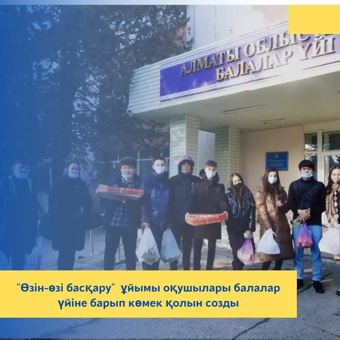 Өзін-өзі басқару ұйымы жетекшілерінің ұйымдастыруымен 2022 жылдың 26 қаңтар күні мектеп оқушылары «Қайырымдылық-қайырлы іс» акциясы аясында балалар үйіне барып көмек қолын созды.