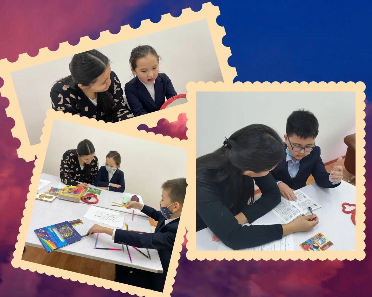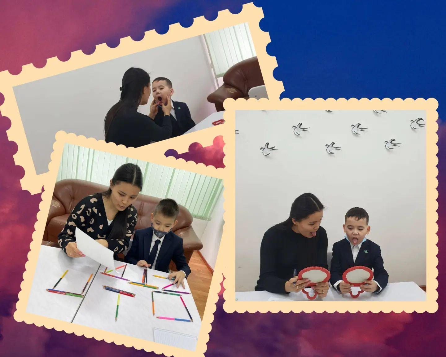 Дефектолог-логопед Таутай Назерке Ержанқызы 3-4-сынып оқушыларымен артикуляциялық бұлшықеттердің, саусақтар мен қолдардың ұсақ дифференциалды қозғалыстарын дамытып, дыбыстарды машықтандырып, таза әрі анық сөйлеуге үйретуде.
