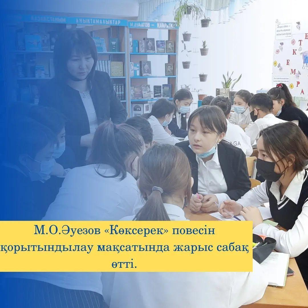 М.О.Әуезов «Көксерек» повесін қорытындылау мақсатында 7 «А», 7 «Б» сынып оқушылары арасында жарыс сабақ өтті.