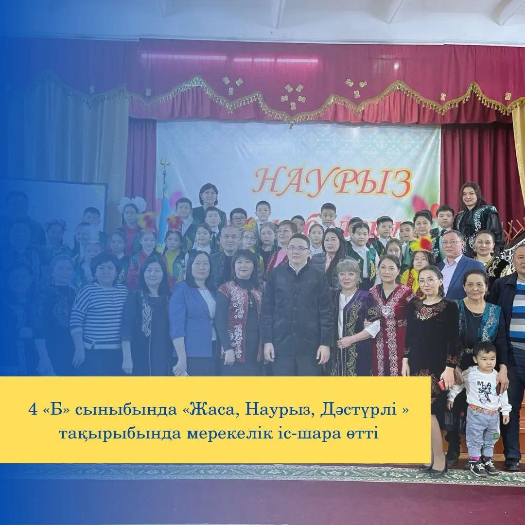4 «Б» сыныбында «Жаса, Наурыз, Дәстүрлі » тақырыбында мерекелік іс-шара өте жоғары дейгейде өтті.