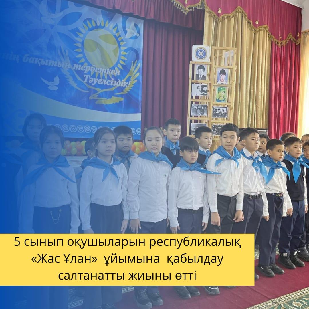 12 декабрь 2022 0 1 2 3 4 5 5 сынып оқушылар "Жас Ұлан" қатарына қабалданды Тәуелсіздік мерекесінің 31 жылдығы қарсаңында 5 сынып оқушыларын республикалық «Жас Ұлан» балалар мен жасөспірімдер ұйымының қатарына қабылдау салтанатты жиыны өткізілді. Осы беттің QR-коды:QR-код этой страницы:
