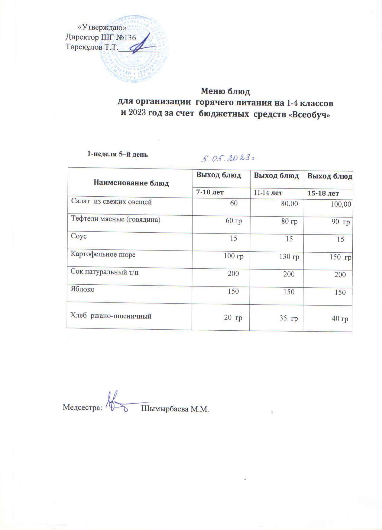 02 май 2023 0 1 2 3 4 5 Мектеп асханасының бір апталық ас мәзірі Осы беттің QR-коды:QR-код этой страницы: