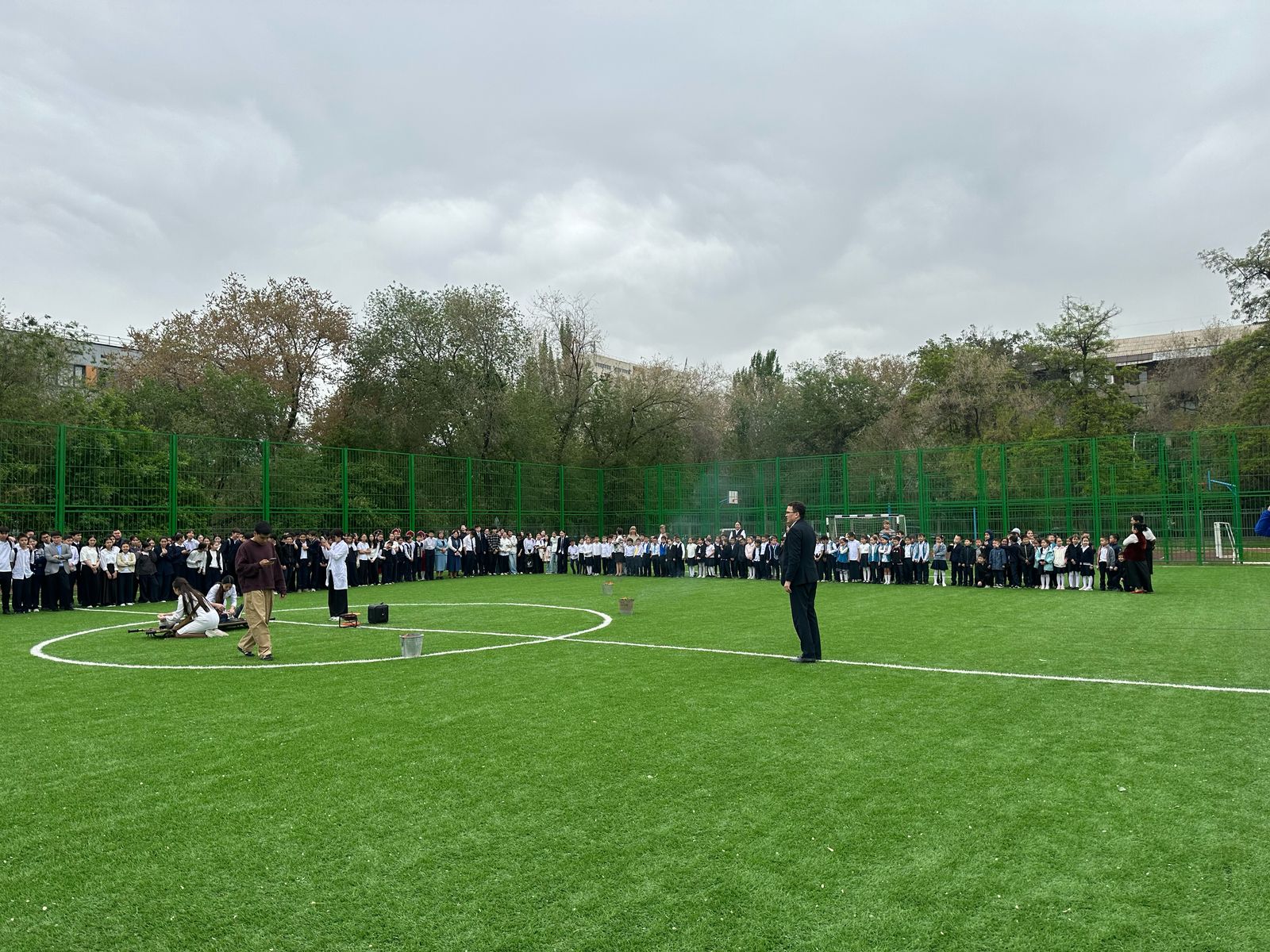 Жаттығу кезінде барлық оқушылар дабыл белгісін ести салысымен қауіпсіз орындарға жасырынып, мұғалімдердің жетекшілігімен мектеп ауласында белгіленген орынға эвакуацияланды.