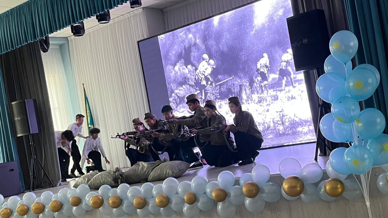 Оқушылар көрермендерге әсерлі көріністер, әндер мен өлеңдер ұсынды.