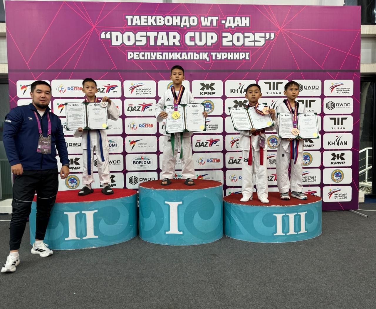 Желтоқсанның 2–4 аралығында Таеквондодан (WT) Алматы қаласында өткен «DOSTAR CUP 2025» ашық республикалық турнирінде оқушыларымыз жүлделі орындарға ие болды!