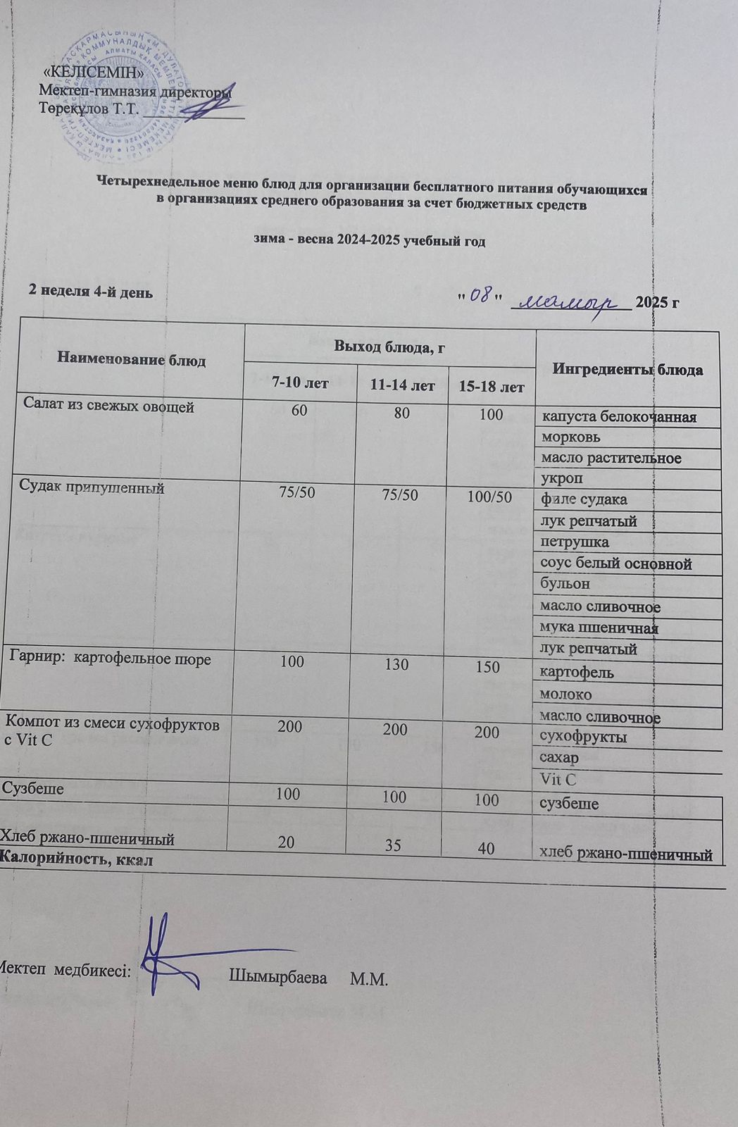 13.03.2025 ж. Мектеп асхана мәзірі