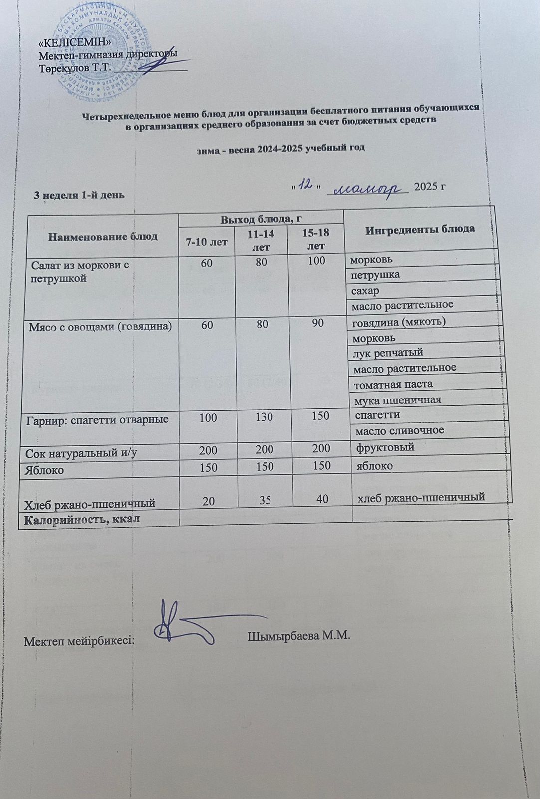 18.03.2025 ж. Мектеп асхана мәзірі