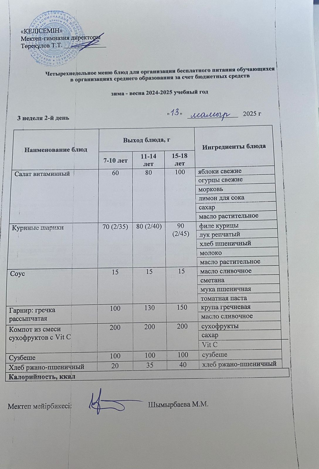 » 13.05.2025 ж. Мектеп асхана мәзірі