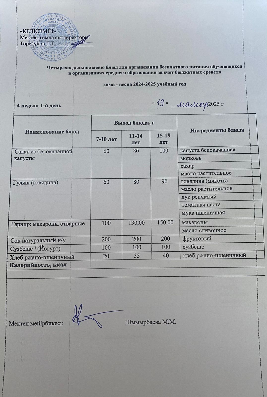 03.03.2025 ж. Мектеп асхана мәзірі
