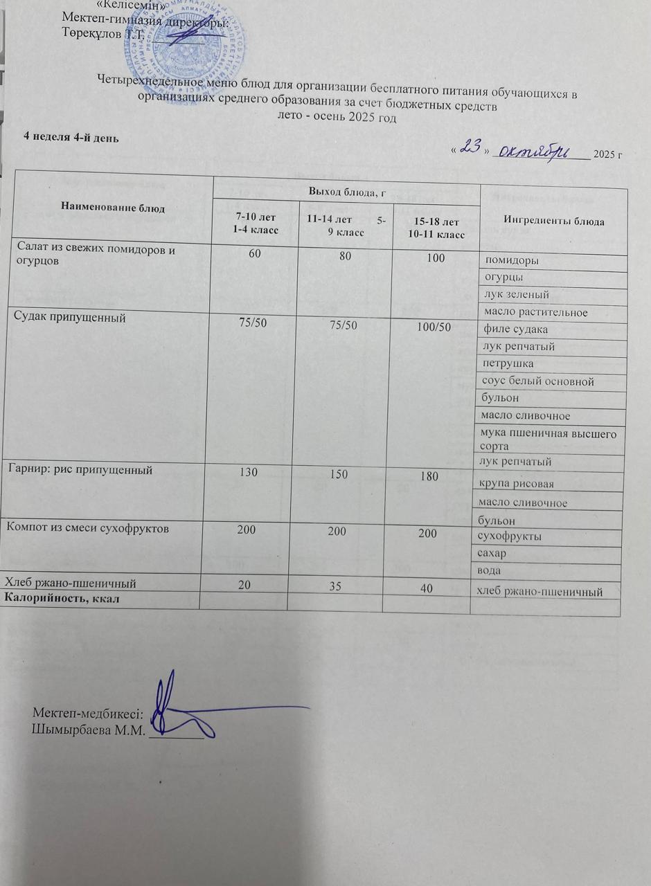 23.10.2025 ж. ас мәзірі