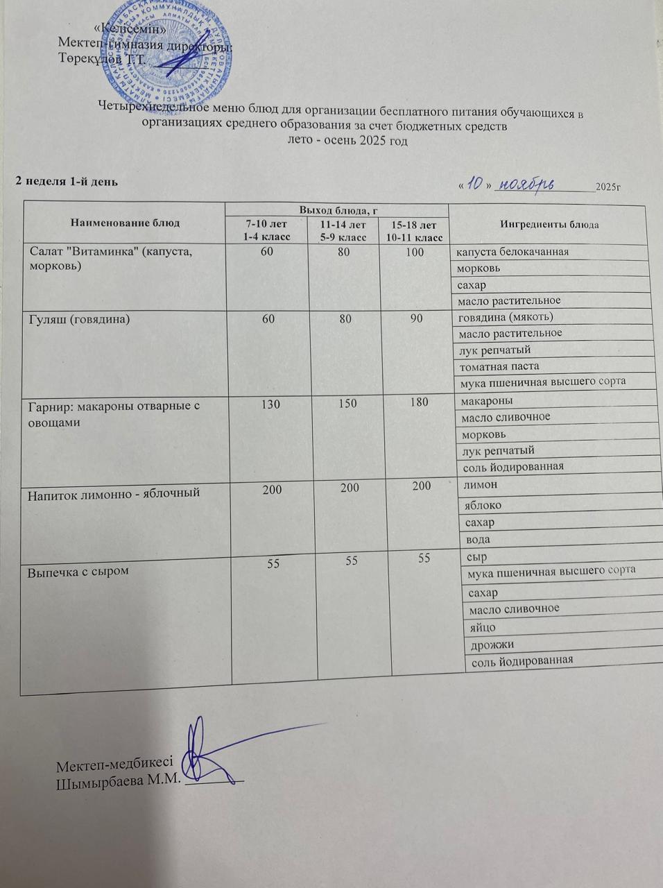 10.11.2025 ж. ас мәзірі
