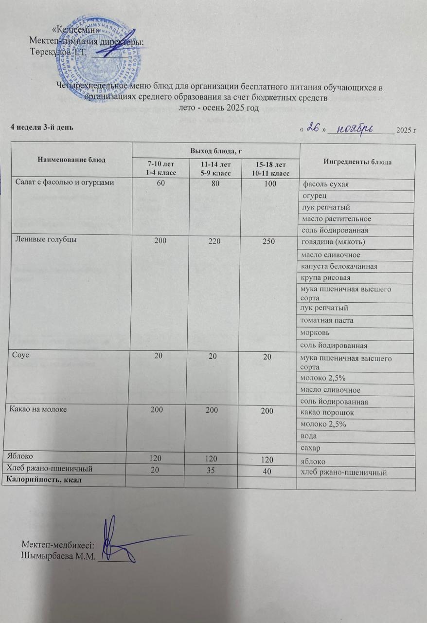26.11.2025 ж. ас мәзірі