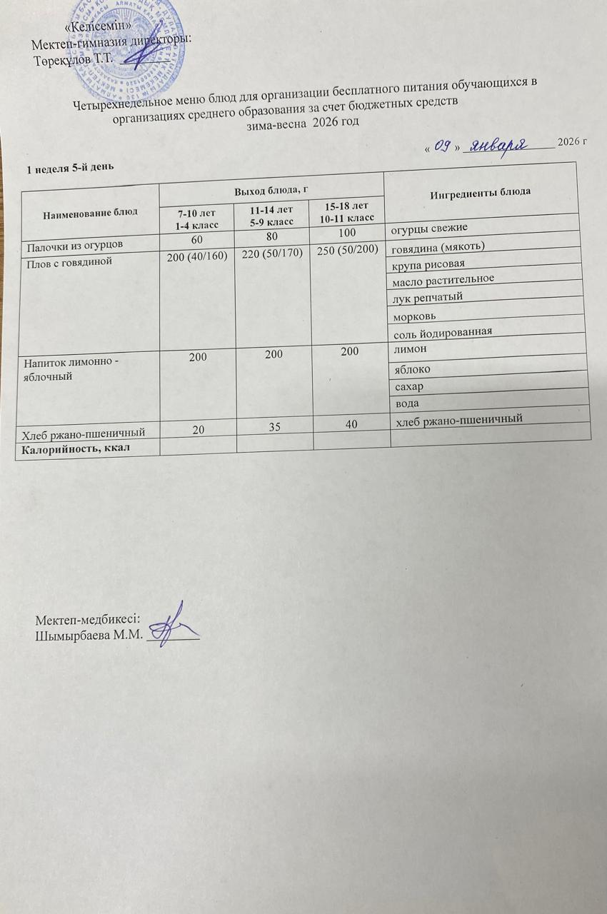 08.01.2026 ж. мектеп асхана мәзірі