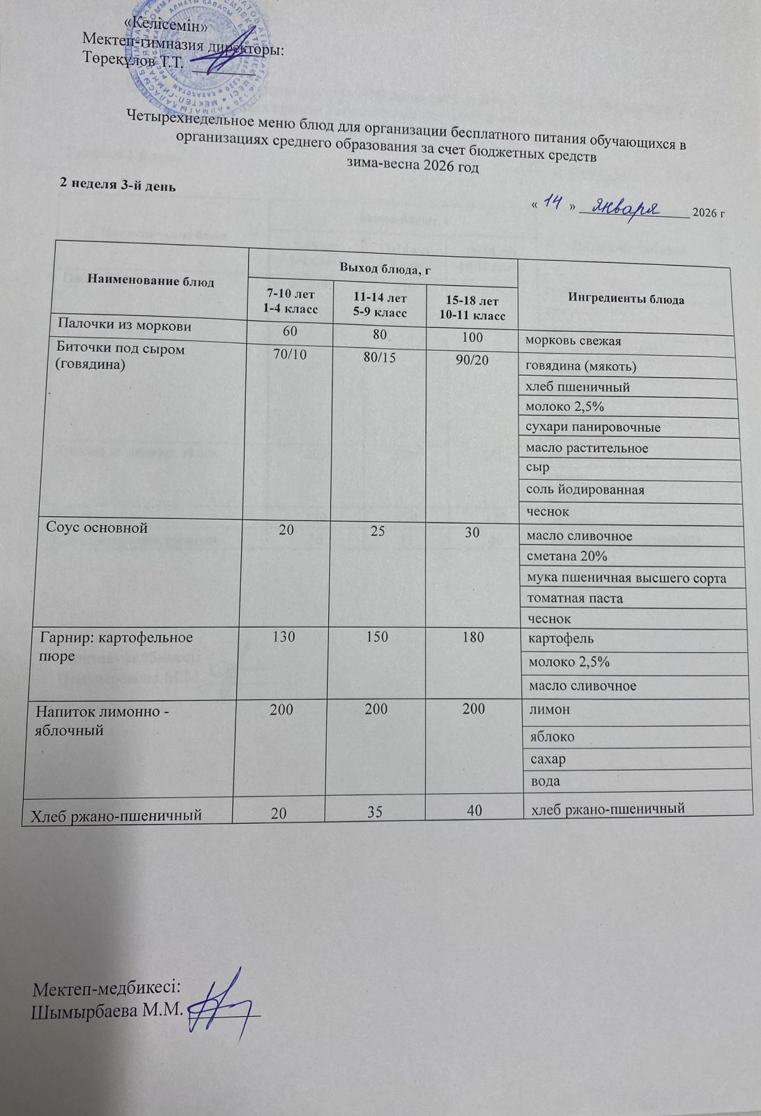 08.01.2026 ж. мектеп асхана мәзірі